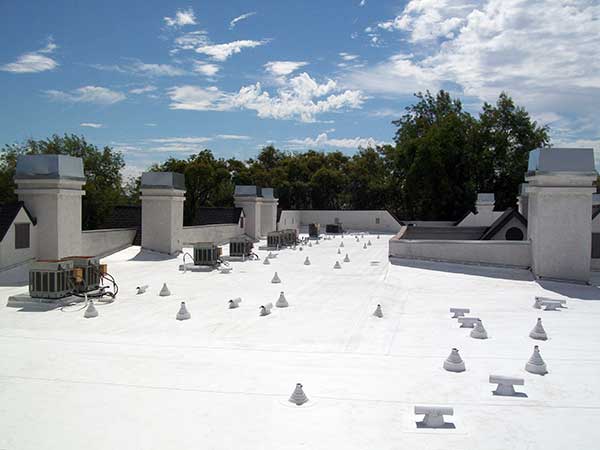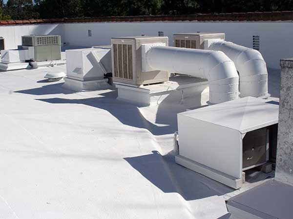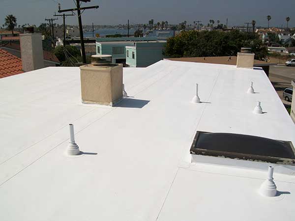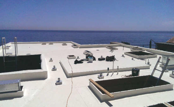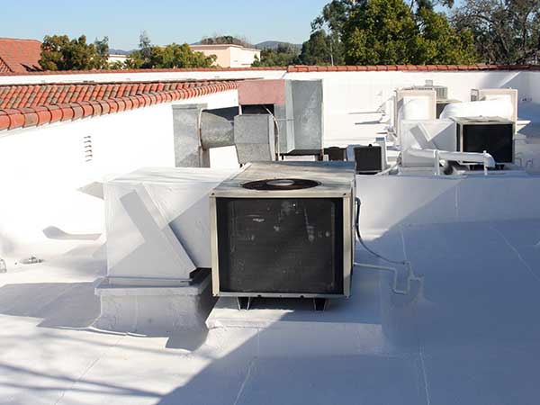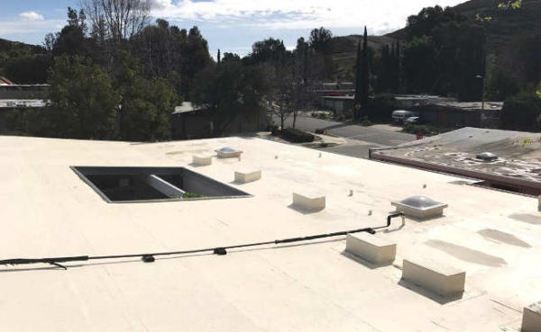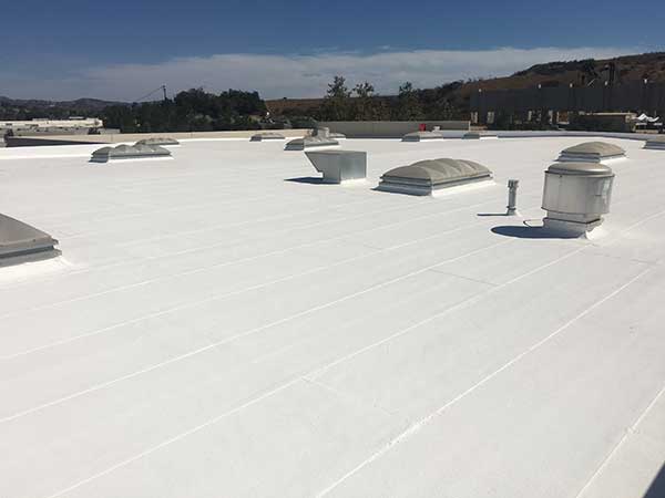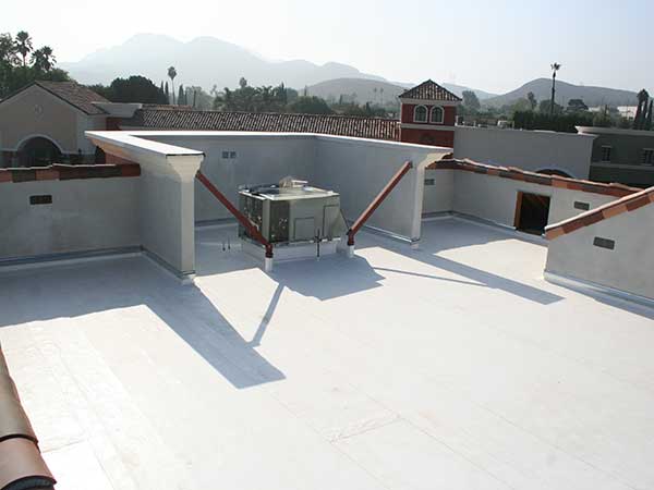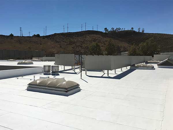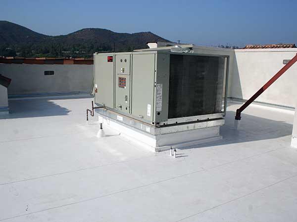 View our collection of pictures involving the application of white elastomeric and urethane roof coatings, modified bitumen and single-ply roof systems. These Title-24 compliant cool roofs save money on energy costs because their highly UV reflective white surface reduces the amount of energy required to cool the building.